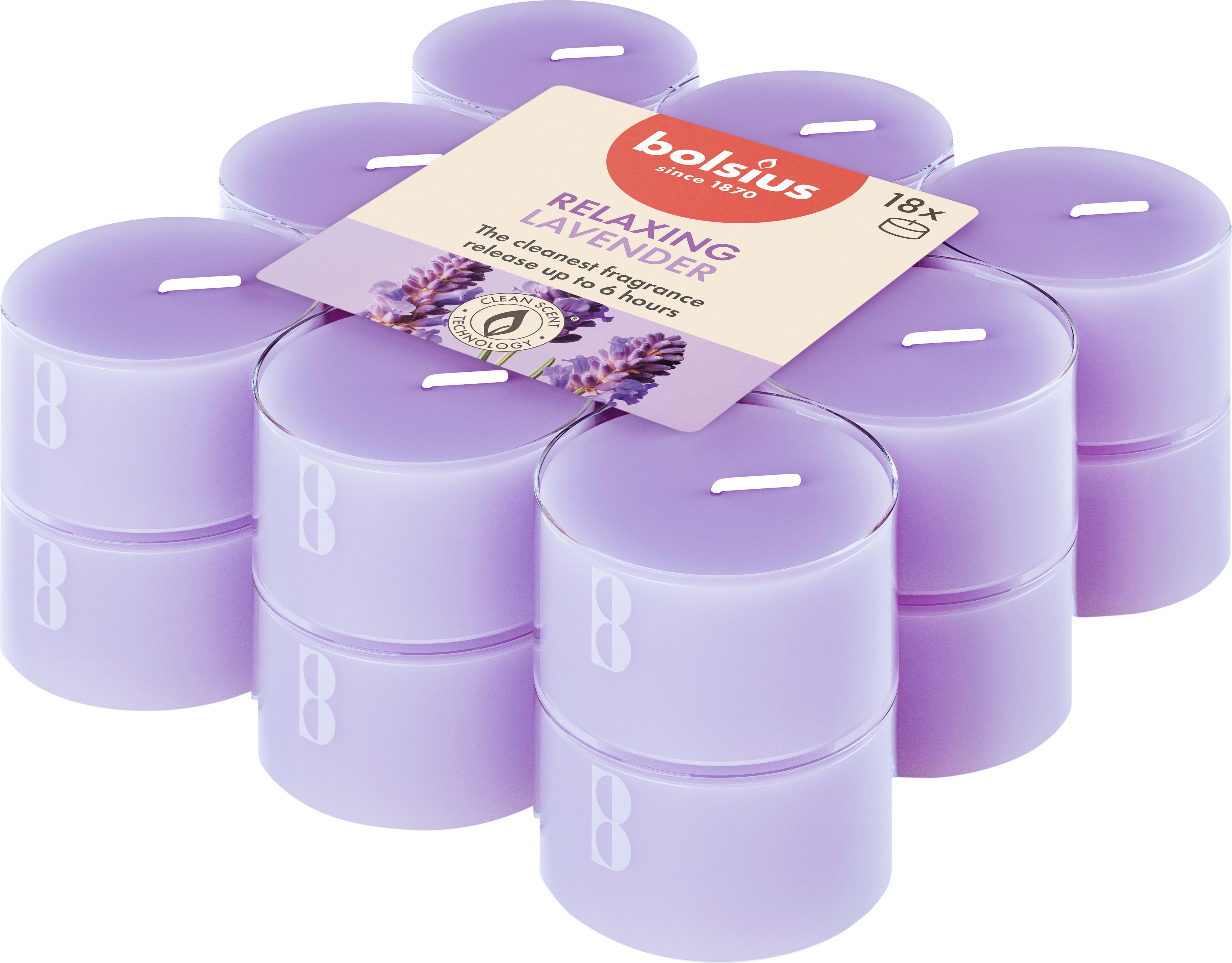 bolsius Tealight, podgrzewacze zapachowe - True Scents, 6h (18 szt.), Lawenda