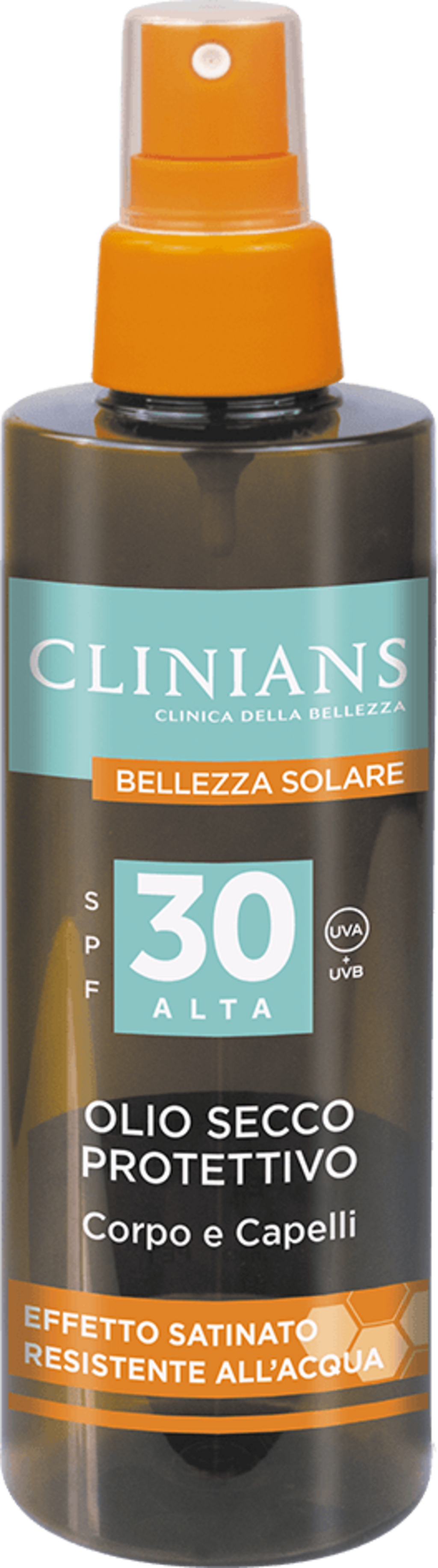 Ten olejek przeciwsłoneczny Clinians chroni skórę i włosy dzięki współczynnikowi ochrony przeciwsłonecznej 30. Jest wzbogacony cennymi olejkami z arganu, jojoby i słonecznika i zapewnia uczucie miękkiej skóry oraz piękną elastyczność włosów. Lekka, wodoodporna konsystencja jest łatwa do nakładania i zapewnia niezawodną ochronę przed promieniami UV.