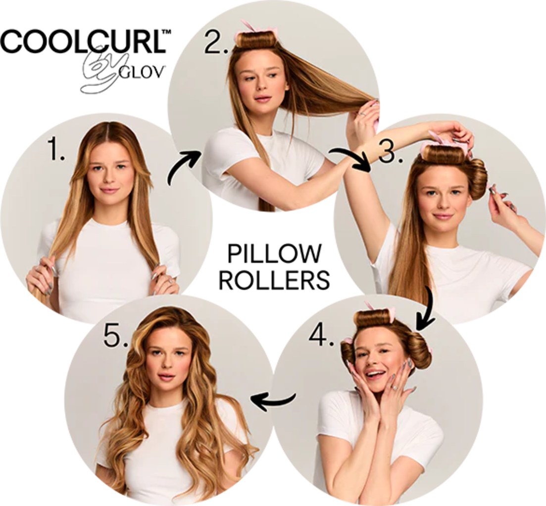 - W celu uzyskania optymalnych rezultatów użyj ulubionych produktów do stylizacji włosów przed nałożeniem wałków Pillow Rollers. Po zdjęciu wałków możesz użyć serum do włosów lub olejku, aby nadać włosom więcej blasku.