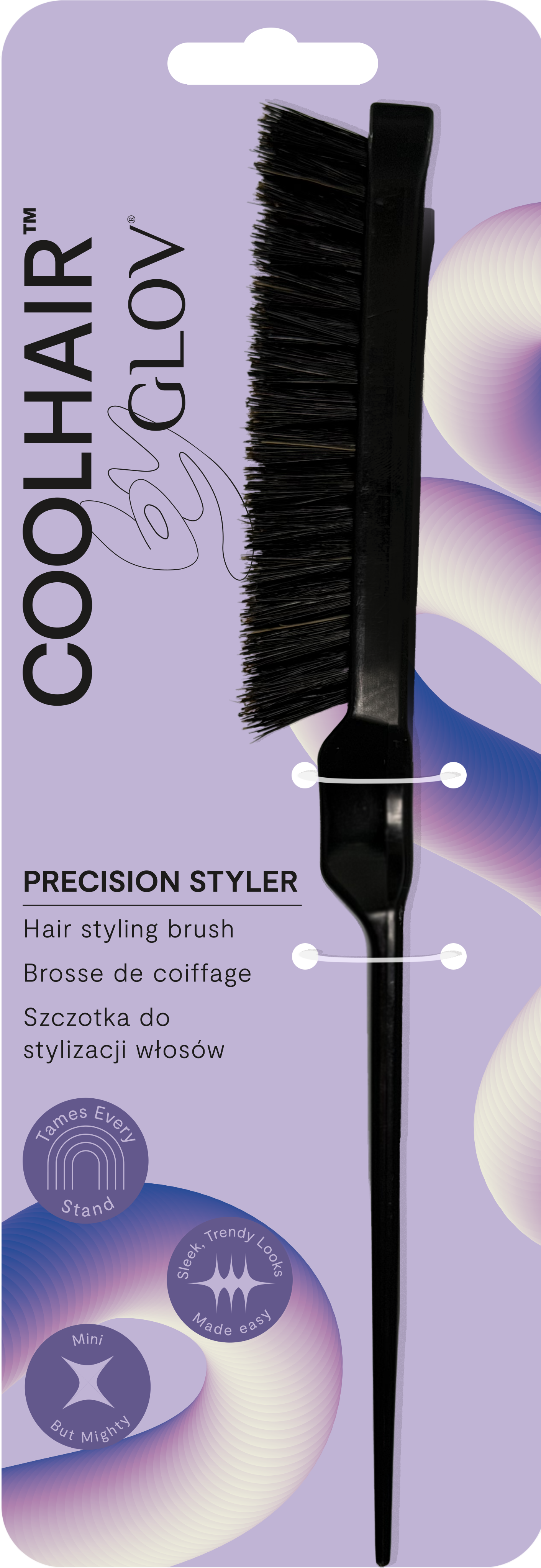 Wskazówka: Nałóż odrobinę żelu lub kremu i użyj PRECISION STYLER Brush, aby wygładzić cienkie włosy u nasady i ujarzmić puszące się kosmyki - idealne rozwiązanie do szybkich, eleganckich poprawek w międzyczasie.