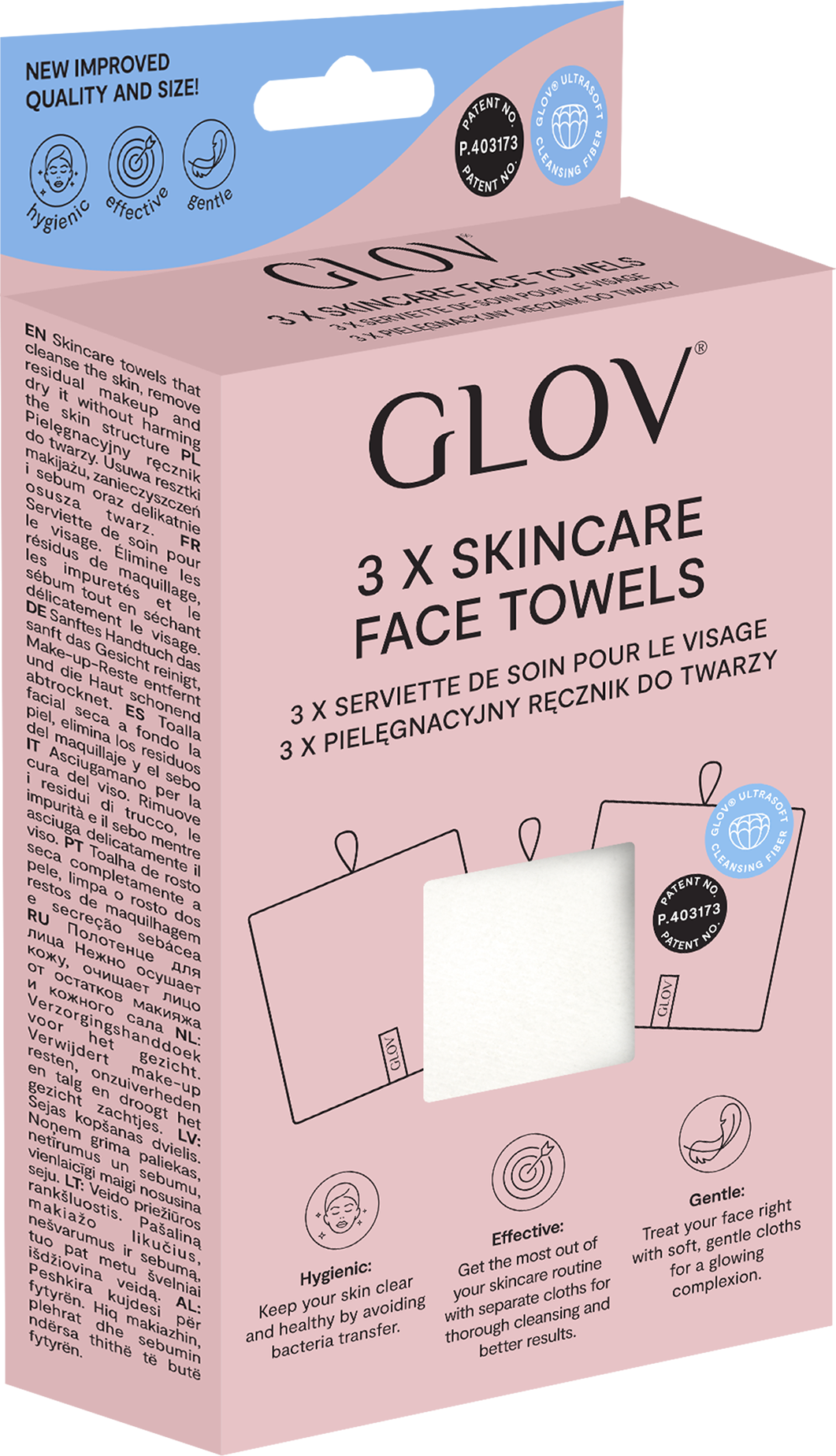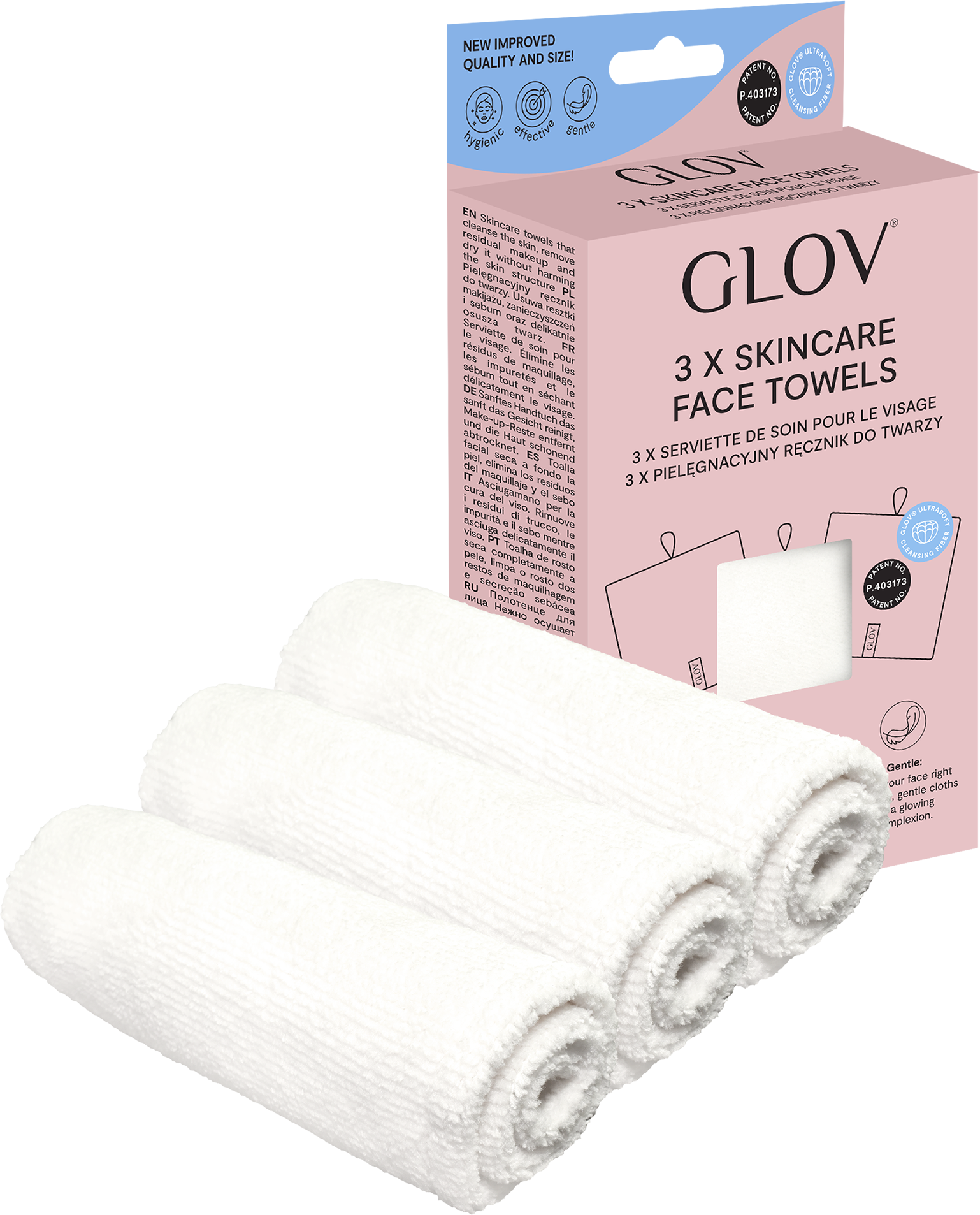 Używanie świeżego osobnego ręcznika do twarzy jest niezbędne, aby zapobiec powstawaniu zanieczyszczeń na skórze. Ręczniki do twarzy marki GLOV wykonane są ze specjalnej mikrofibry, która szybko wysusza skórę bez konieczności pocierania, a jednocześnie delikatnie usuwa wszelkie pozostałości po kremach, maseczkach czy makijażu. Dzięki swej wyjątkowej miękkości włókna te nadają się również do skóry wrażliwej i bardzo wrażliwej.
