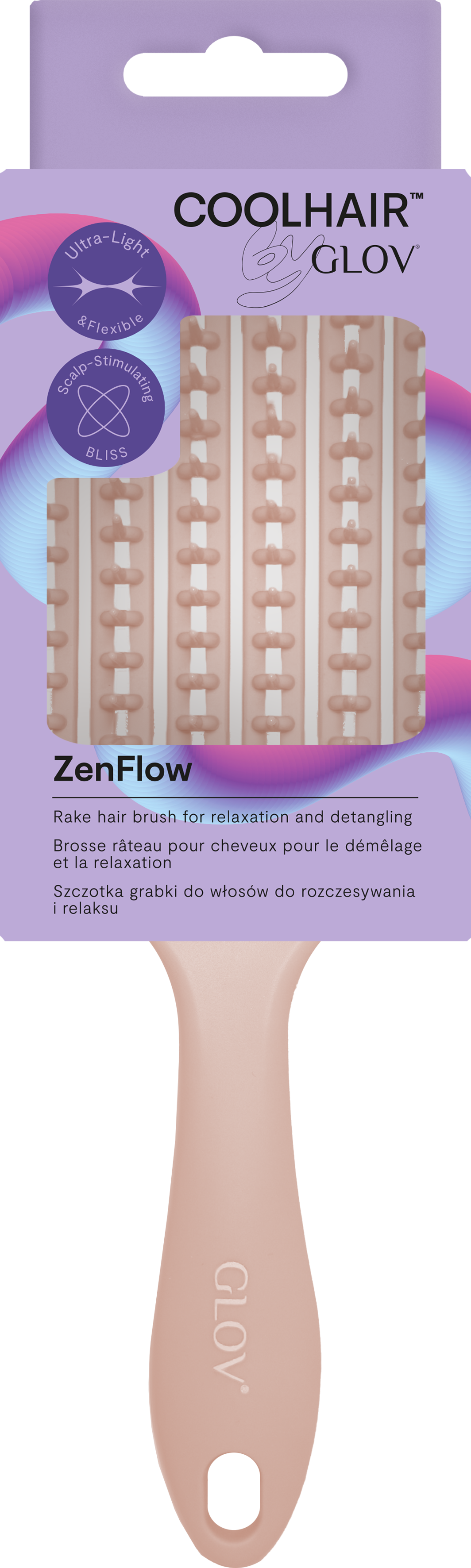Wskazówka: Aby uzyskać najbardziej relaksujący moment, użyj ZenFlow Hair Brush na wilgotnych włosach z ulubioną odżywką bez spłukiwania - lub szczotkuj włosy do góry nogami, aby uzyskać efekt masażu