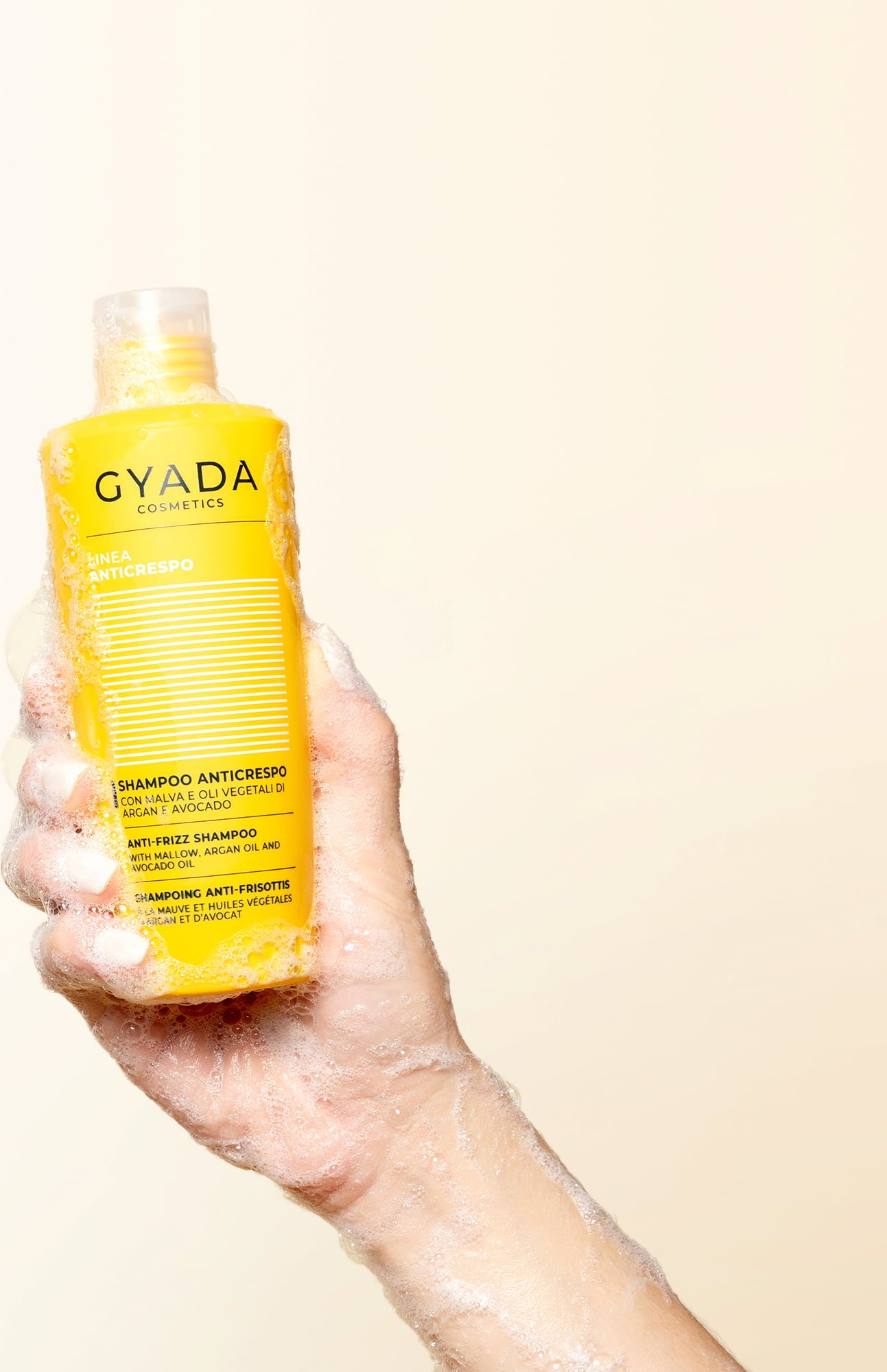 Anti-Frizz Szampon firmy GYADA Cosmetics ma delikatną formułę i opracowany został specjalnie do potrzeb włosów suchych, łamliwych i z rozdwojonymi końcówkami. Zmiękcza włosy, a wyszukane olejki tj. olejek arganowy, olejek z lnu i awokado zapewniają im ochronę.