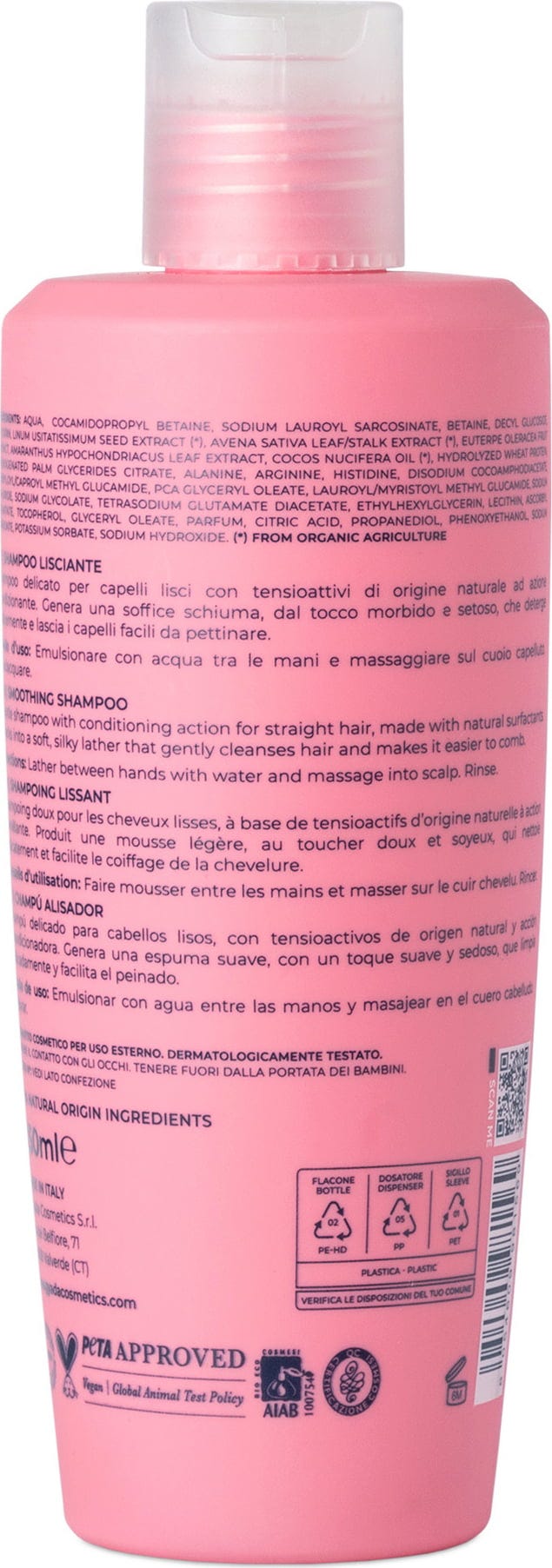 Ten szampon został opracowany specjalnie do włosów prostych. Delikatnie oczyszcza i pielęgnuje dzięki ekstraktom z lnu, owsa, acai i amarantusa. Jego delikatna pianka jest jedwabista i przyjemna, łagodna dla włosów i ułatwia ich rozczesywanie.