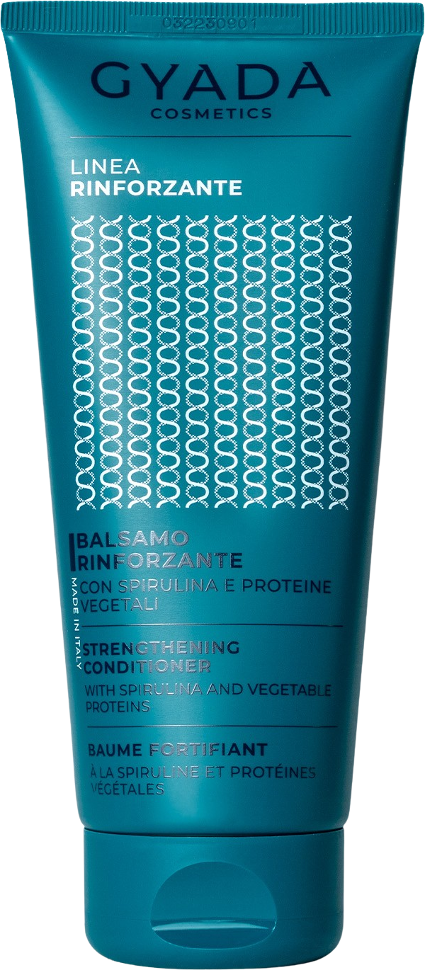 Wzmacniający balsam GYADA Cosmetics odbudowuje kruche, rozdwajające się włosy i nadaje im nowy połysk. Ma również działanie zmiękczające, które pomaga rozwikłać nawet najbardziej zbuntowane włosy. Produkt zawiera spirulinę (algi morskie, bogate w sole mineralne, witaminy i aminokwasy), które działają synergicznie z żeń-szeniem, owsem i skrzypem. Inne aktywne składniki, takie jak aloes, proteiny pszenicy i oleje roślinne, pomagają utworzyć naturalny film ochronny na włosach, aby uwodnić i głęboko odżywiać.