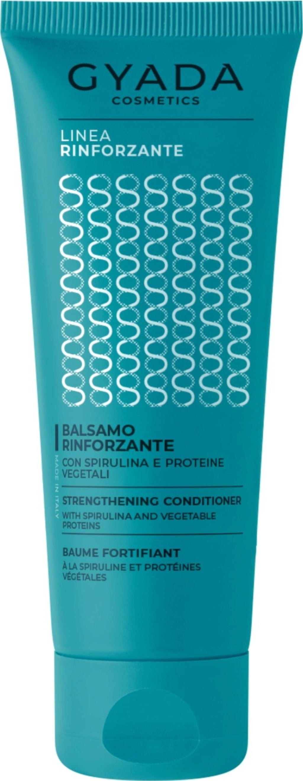 Wzmacniający balsam GYADA Cosmetics odbudowuje kruche, rozdwajające się włosy i nadaje im nowy połysk. Ma również działanie zmiękczające, które pomaga rozwikłać nawet najbardziej zbuntowane włosy. Produkt zawiera spirulinę (algi morskie, bogate w sole mineralne, witaminy i aminokwasy), które działają synergicznie z żeń-szeniem, owsem i skrzypem. Inne aktywne składniki, takie jak aloes, proteiny pszenicy i oleje roślinne, pomagają utworzyć naturalny film ochronny na włosach, aby uwodnić i głęboko odżywiać.