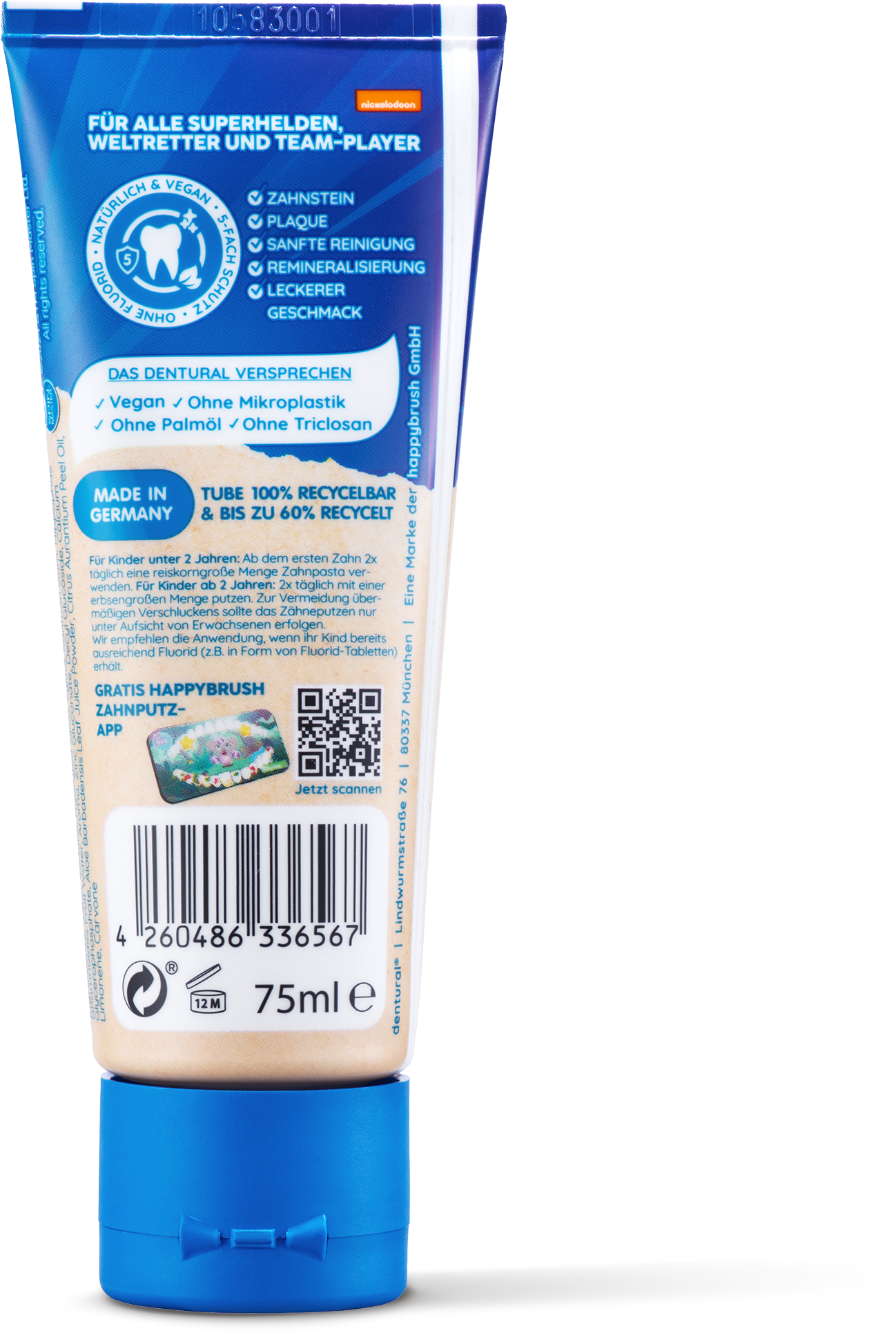 happybrush dentural® KIDS Pasta do zębów bez fluoru - pierwsze zęby, 75 ml