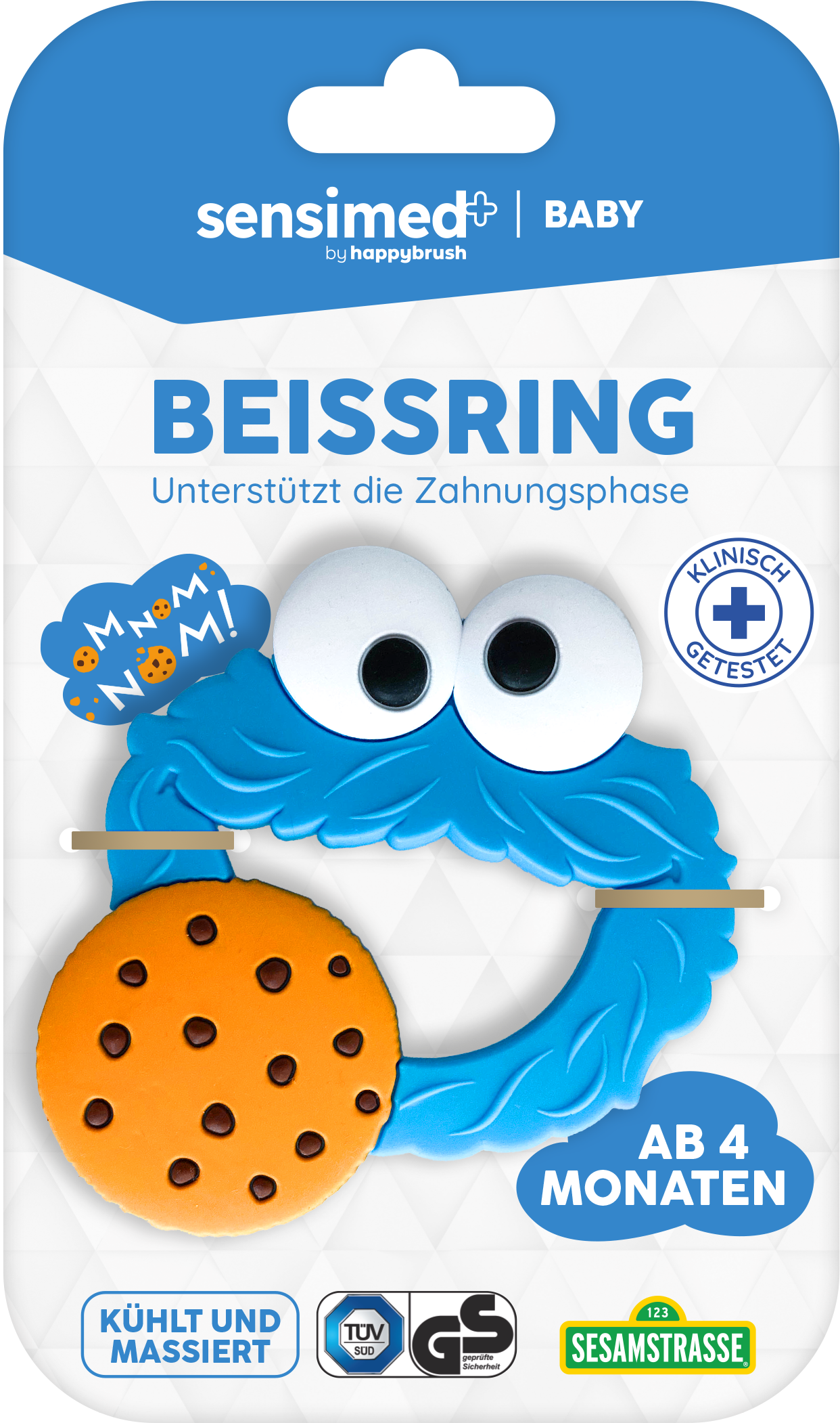 Ten gryzak w kształcie Ciasteczkowego Potwora jest idealny do stosowania podczas fazy ząbkowania dziecka. Duża powierzchnia masująca zapewnia przyjemną ulgę od swędzenia i ucisku. Przed użyciem gryzak można umieścić w lodówce, aby zapewnić przyjemne chłodzenie.