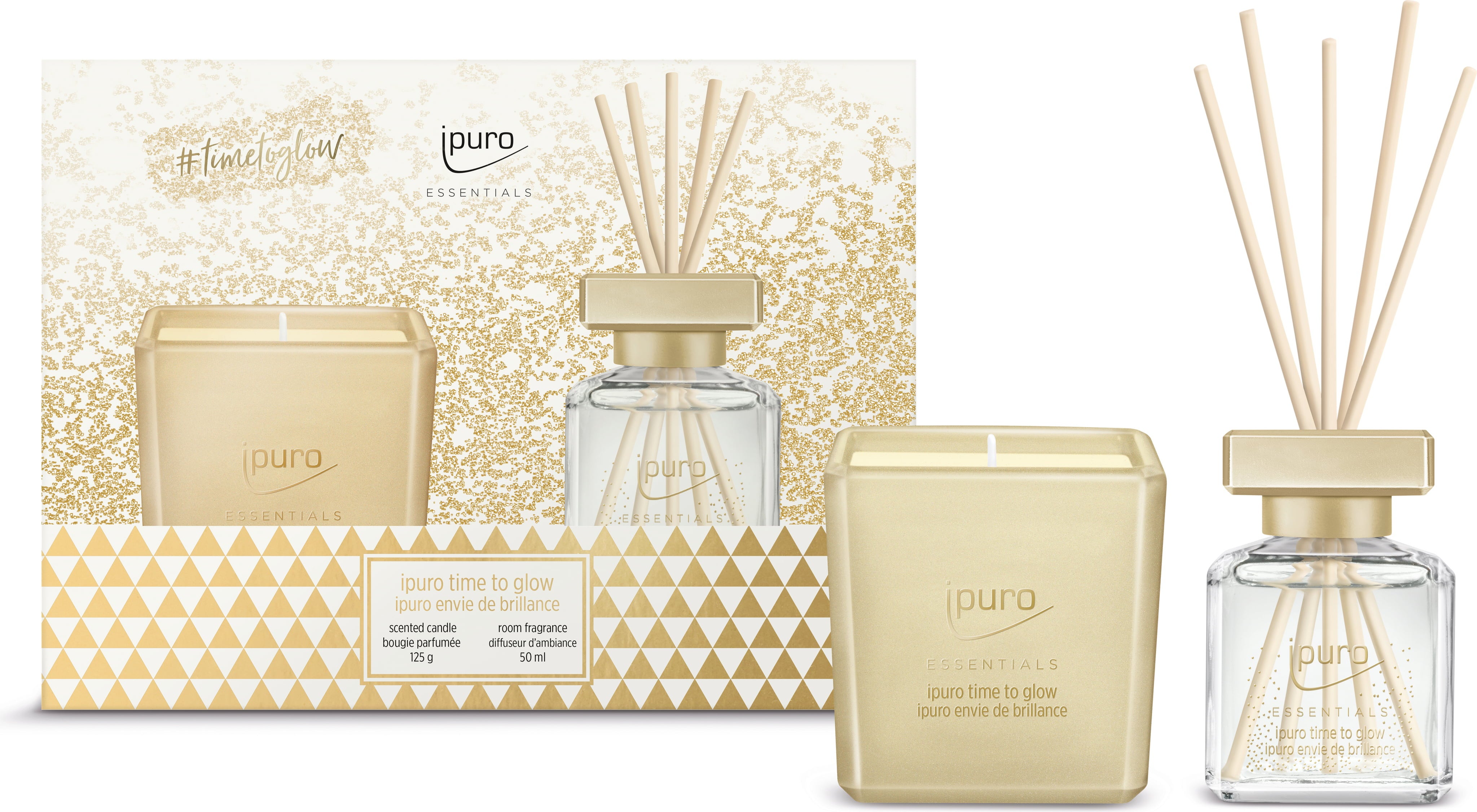 Zestaw zapachów do pomieszczeń Essentials Time To Glow od ipuro zawiera zapach do pokoju z patyczkami zapachowymi i świeczką zapachową. W mgnieniu oka wydzielają orientalny zapach w Twojej przestrzeni życiowej. Idealny również jako prezent.