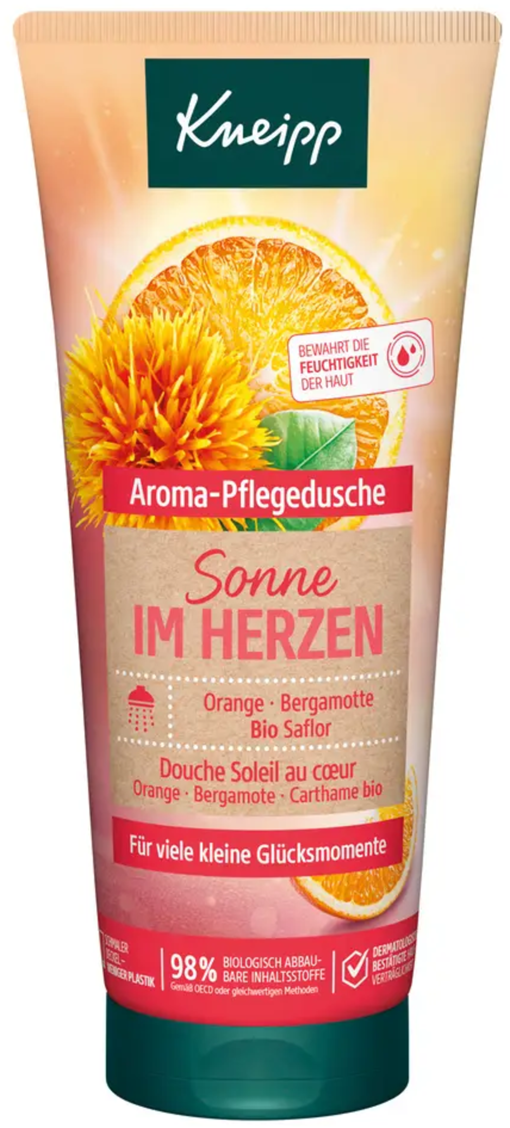 Ten aromatyczny żel pod prysznic Kneipp oczaruje Cię pod prysznicem orzeźwiającym cytrusowym zapachem olejków eterycznych z pomarańczy i bergamotki. Cenny organiczny olej z krokosza barwierskiego zapewnia również przyjemne uczucie miękkości skóry podczas i po kąpieli.
