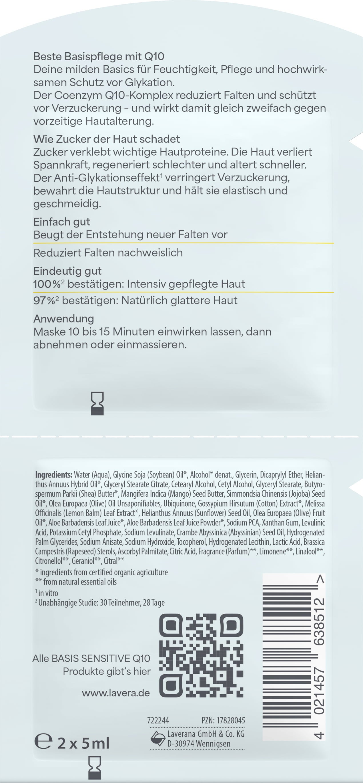 lavera Basis Sensitiv maska przeciw zmarszczkom Q10, 10 ml