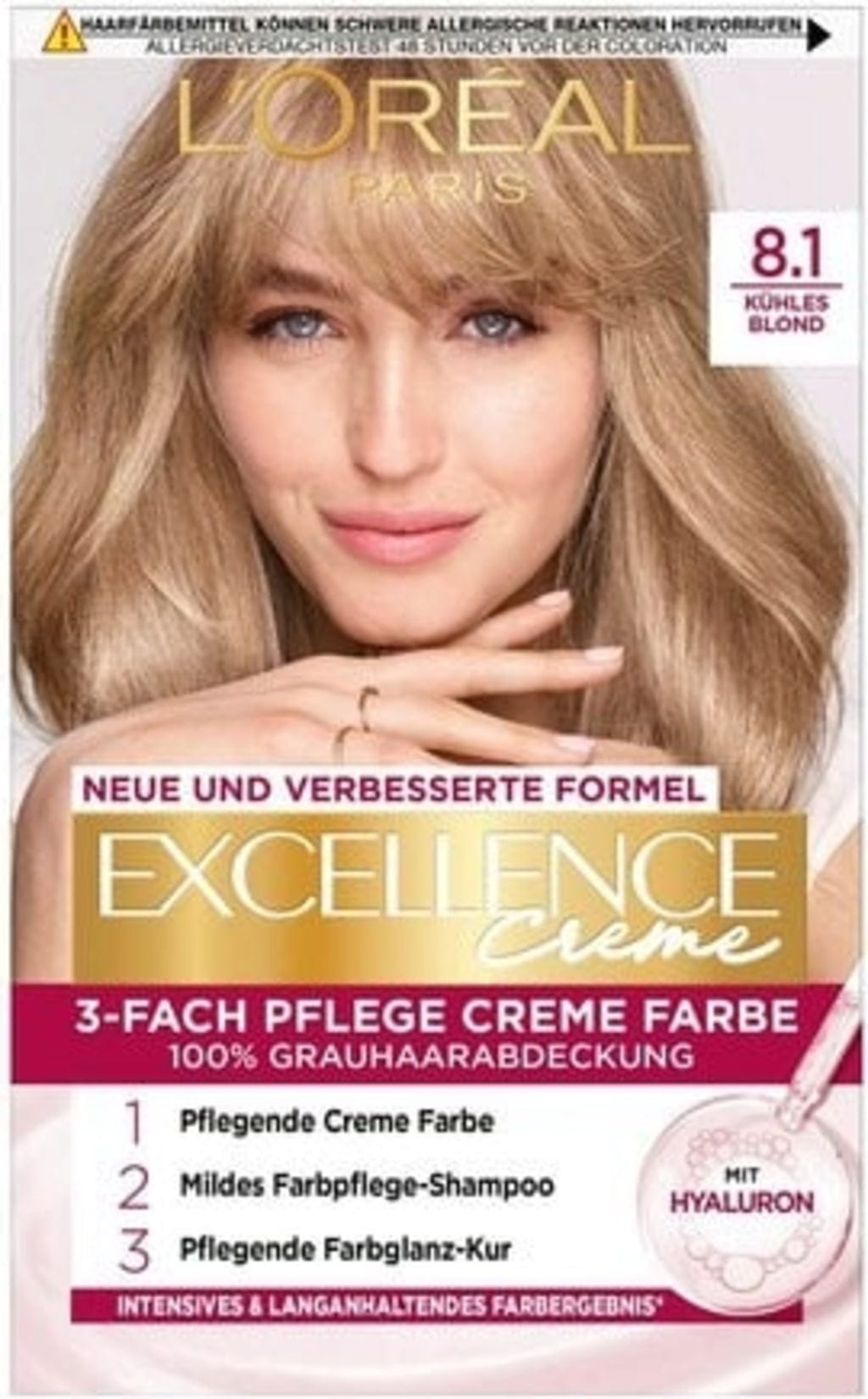 EXCELLENCE Crème 8.1 Popielaty Jasny Blond nie tylko sprawia, że Twoja fryzura lśni popielatym blondem, bez śladu siwych włosów, ale zajmuje się włosami, również w takich obszarach: