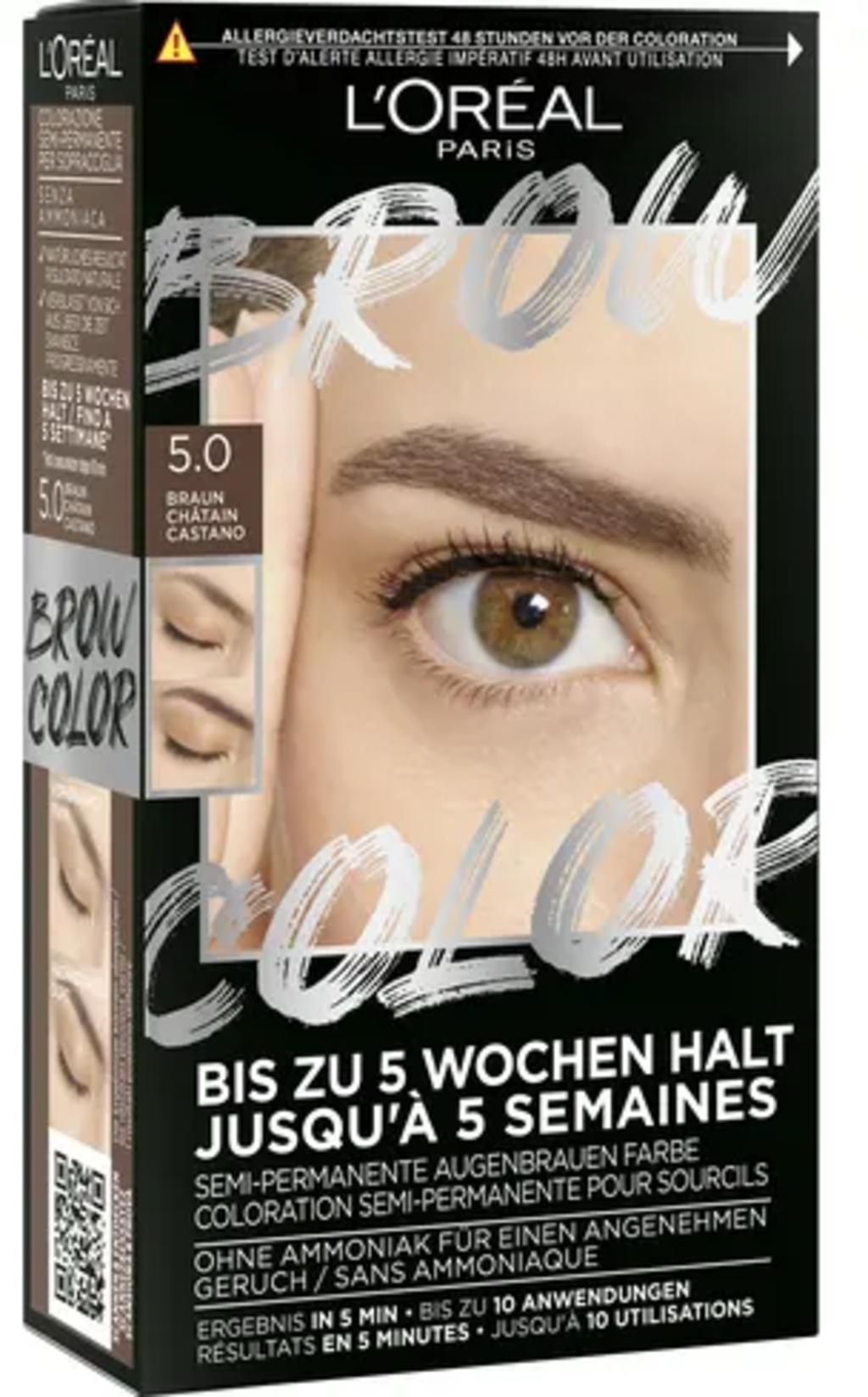 Czy Twoje brwi potrzebują koloru i objętości? Dzięki farbie do brwi „Brow Color” marki L'ORÉAL PARIS możesz stworzyć piękne brwi w zaledwie 5 minut. Formuła pozbawiona amoniaku zapewnia kolor aż do 5 tygodni.