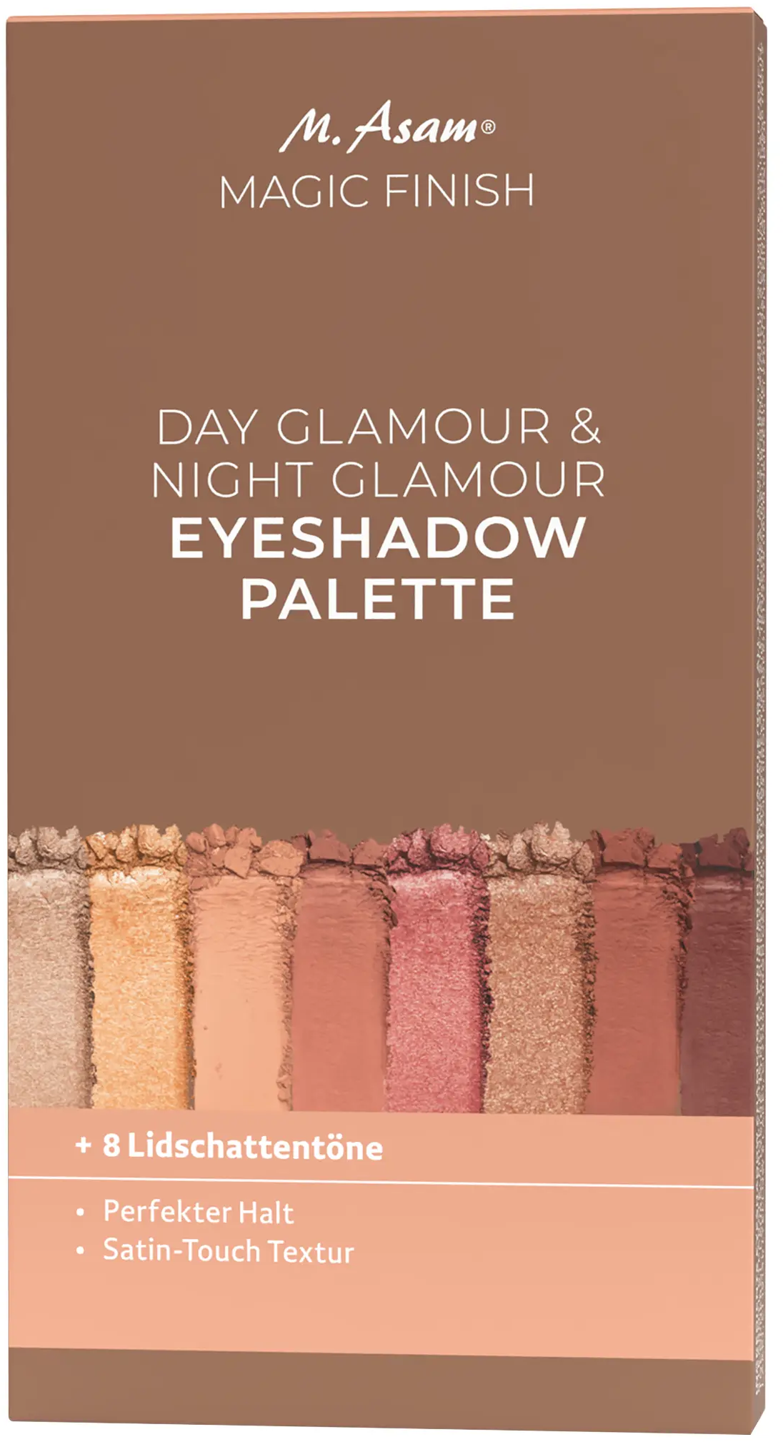 Dzięki palecie cieni do powiek MAGIC FINISH Day Glamour & Night Glamour od M.Asam możesz stworzyć dowolny makijaż. Niezależnie od tego, czy chodzi o naturalny wygląd na co dzień, czy wyszukany makijaż wieczorowy - te 8 odcieni jest teraz częścią Twojej rutyny makijażowej.