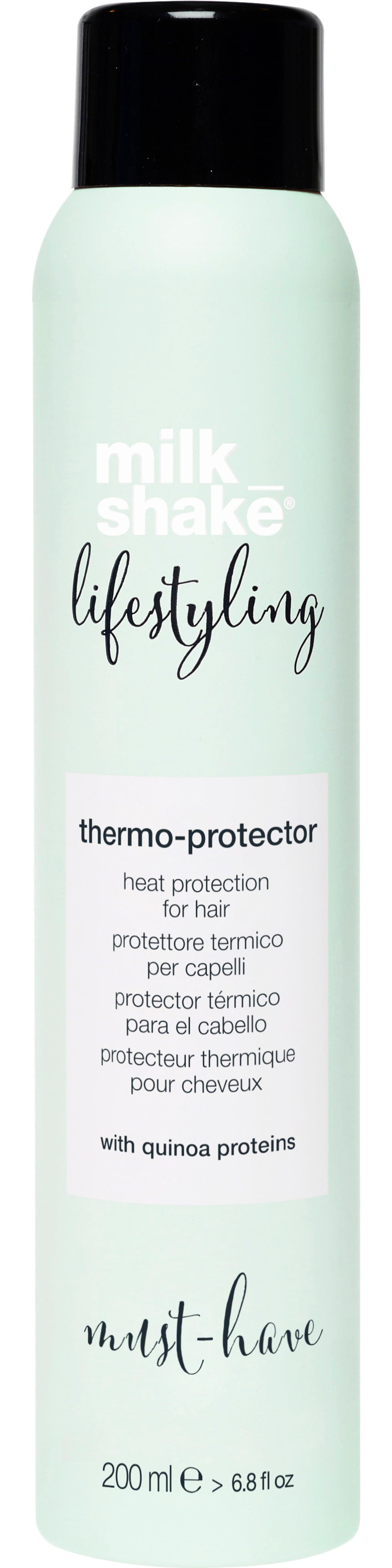 Thermo Protector od milk_shake tworzy ultralekką warstwę ochronną wokół włókien włosów przed użyciem narzędzi termicznych, która chroni przed wysokimi temperaturami, a tym samym może zapobiegać rozdwajaniu się końcówek i łamaniu włosów. Jego delikatna formuła w sprayu ułatwia stylizację i może być nakładana równomiernie od nasady aż po same końce. Wzbogacony o cenne proteiny film ochronny odżywia włosy, dodaje im blasku i sprawia, że są wyraźnie bardziej miękkie i gładkie. Idealny dla wszystkich rodzajów włosów, które regularnie używają narzędzi do stylizacji termicznej i cenią sobie zadbane włosy.
