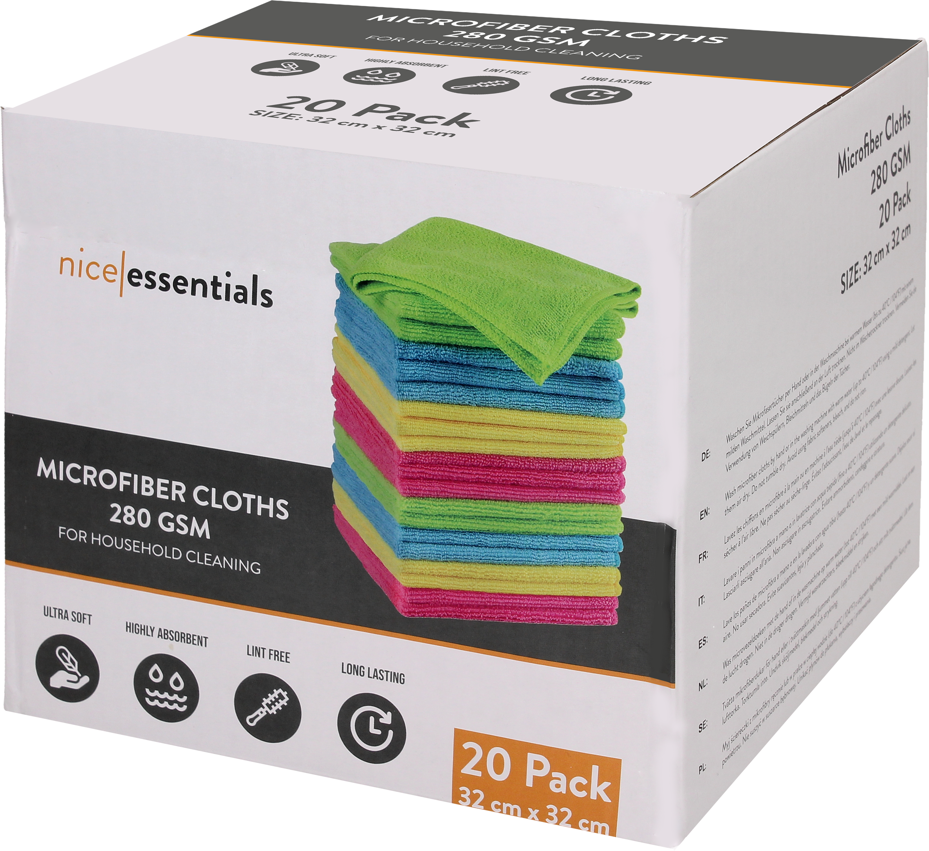 nice essentials Ściereczki czyszczące z mikrofibry premium 32 x 32 cm, zestaw, 20 Szt.