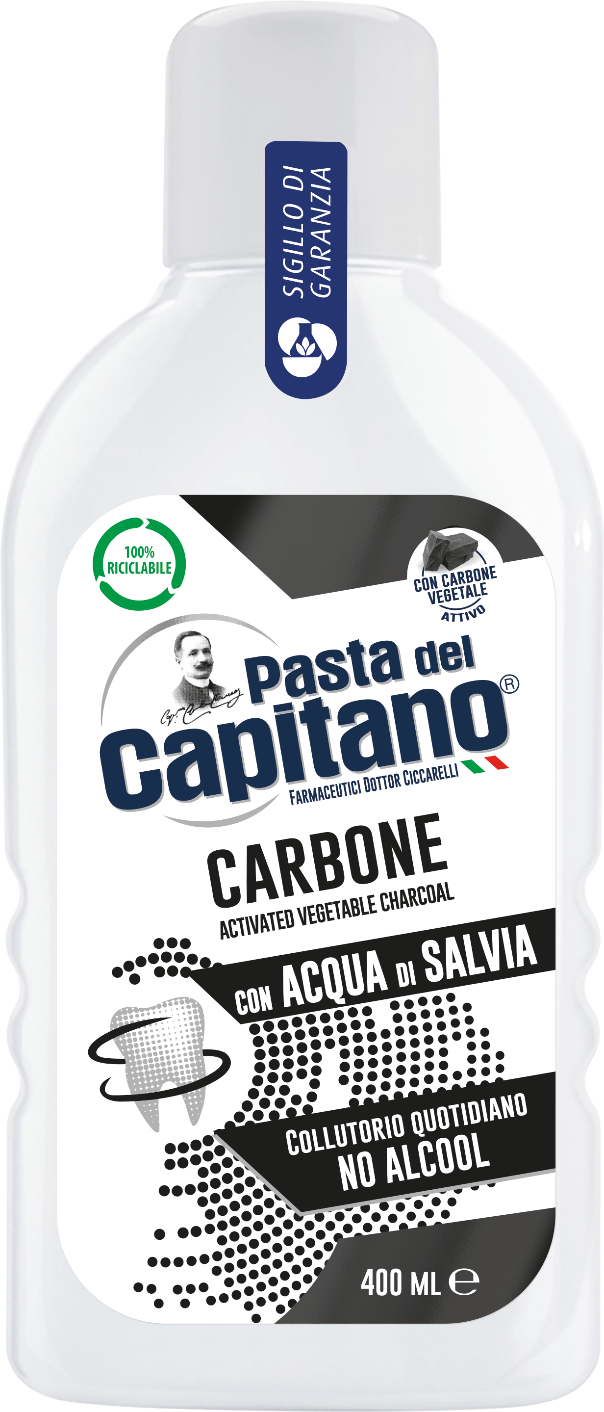 Pasta del Capitano Płyn do płukania ust z węglem aktywnym, 400 ml