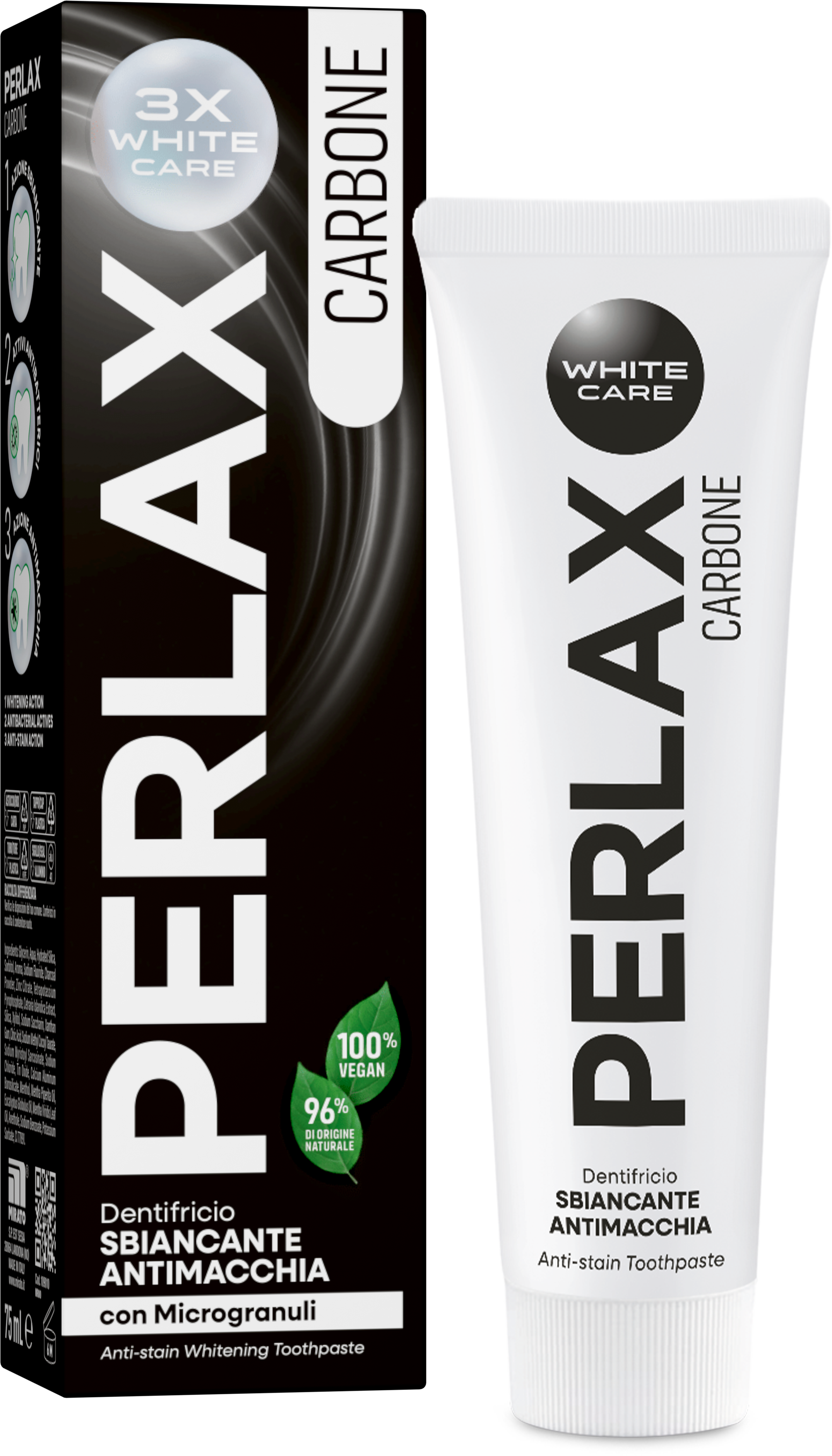 Pasta do zębów Perlax Charcoal łączy cenne właściwości węgla aktywnego z mikrogranulkami i fluorem. Delikatnie usuwa płytkę nazębną i przebarwienia z zębów, jednocześnie wspierając remineralizację szkliwa zębów - dla skutecznej pielęgnacji jamy ustnej, dzień po dniu.