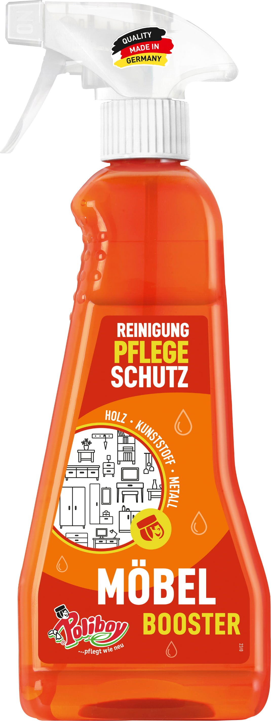 Booster dla mebli Poliboy zapewnia pielęgnację i ochronę oraz nadaje meblom nowe życie. Usuwa codzienne zabrudzenia, kurz i plamy z powierzchni plastikowych, drewnianych i metalowych. Przy regularnym stosowaniu jego formuła zapewnia również długowieczność i połysk mebli, dzięki czemu możesz cieszyć się piękną atmosferą w domu przez długi czas. Świeży, letni zapach sprawia, że czyszczenie jest przyjemnością, a także tworzy zachęcającą atmosferę.