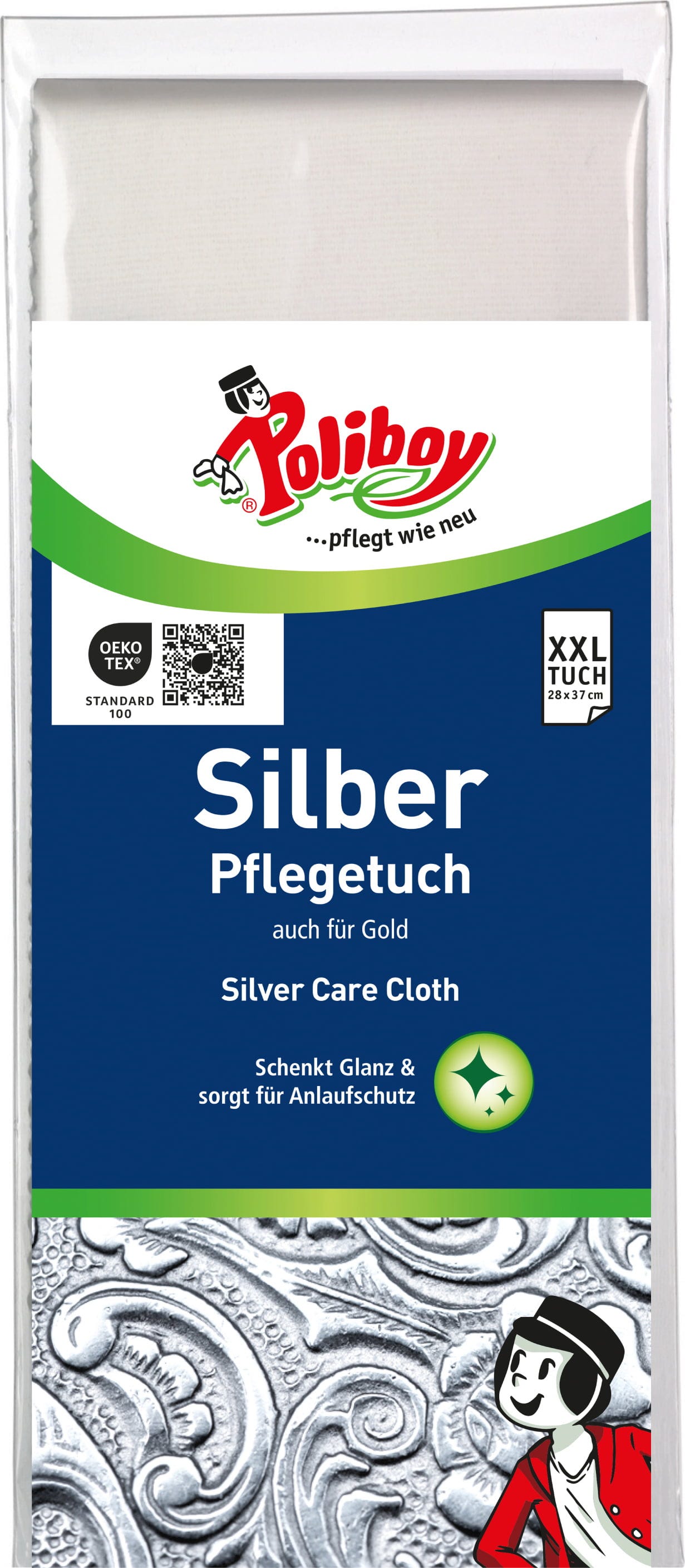 Ściereczka do pielęgnacji srebra od Poliboy czyści, pielęgnuje i chroni przedmioty wykonane z prawdziwego srebra lub złota, a także zapewnia trwałą ochronę przed matowieniem przy regularnym stosowaniu. Ściereczki można używać do biżuterii, dzbanków, sztućców, naczyń, medali, monet i wszystkich posrebrzanych akcesoriów, którym chcemy przywrócić blask.