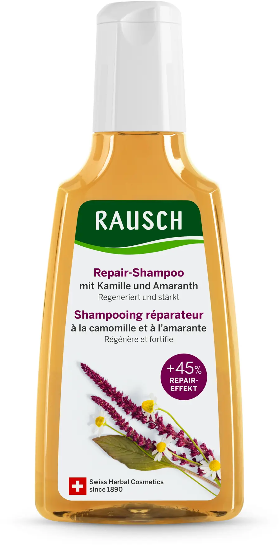 Szampon odbudowujący firmy Rausch do włosów zniszczonych i łamliwych oczyszcza za pomocą delikatnych środków powierzchniowo czynnych. Jednocześnie włosy otrzymują wspaniałą pielęgnację dzięki zawartemu w kosmetyku ekstraktowi z rumianku, szarłaty i kory panamskiej. Szampon nie zawiera silikonów i parabenów.
