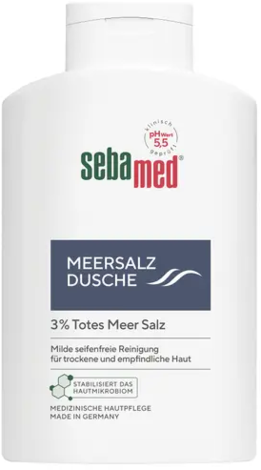 Łagodna formuła z solą morską z Morza Martwego delikatnie myje i pielęgnuje suchą i wrażliwą skórę oraz wspiera jej równowagę nawilżenia. Cechą szczególną jest trzyprocentowa zawartość soli, która w dłuższej perspektywie może przyczynić się do poprawy cery. Bez mydła.