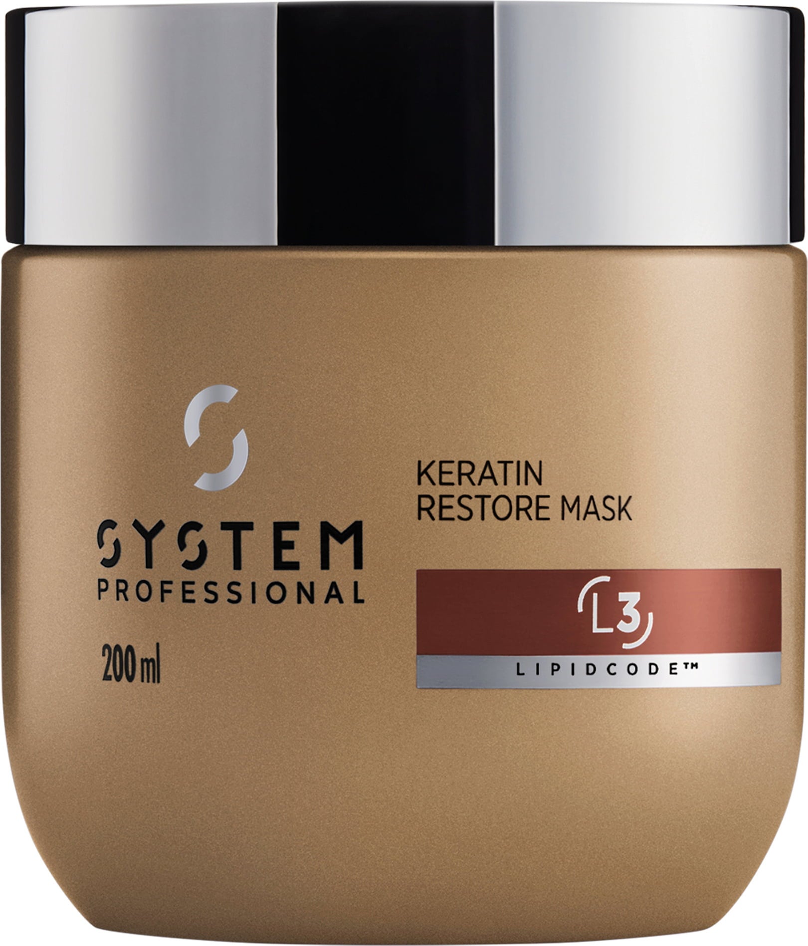 LuxeOil Keratin Restore Mask (L3) firmy System Professional LipidCode służy do natychmiastowego odbudowania włosów, chroni keratynę i włókna włosów przed obciążeniami stylizacyjnymi.