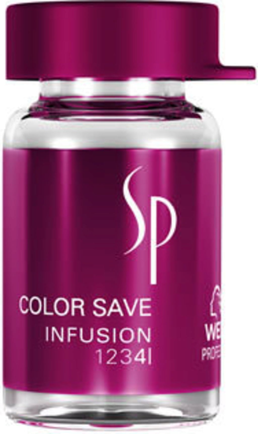 SP Care Color Save Infusion od Wella Professionals to serum zapewniające doskonałą ochronę koloru włosów farbowanych. Można go stosować z dowolną maską SP, aby uzyskać większy połysk i intensywność.