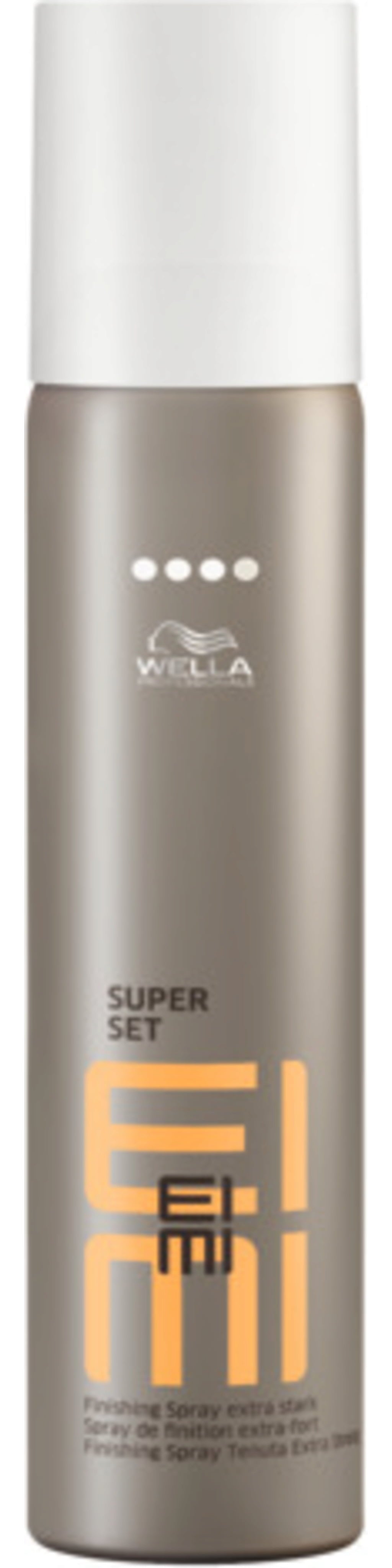 Super Set Finishing Spray firmy Wella Professionals to wyjątkowo mocny spray, który utrwala stylizację. EIMI Super Set pomaga również chronić włosy przed działaniem wilgoci, promieni UV i temperatury.