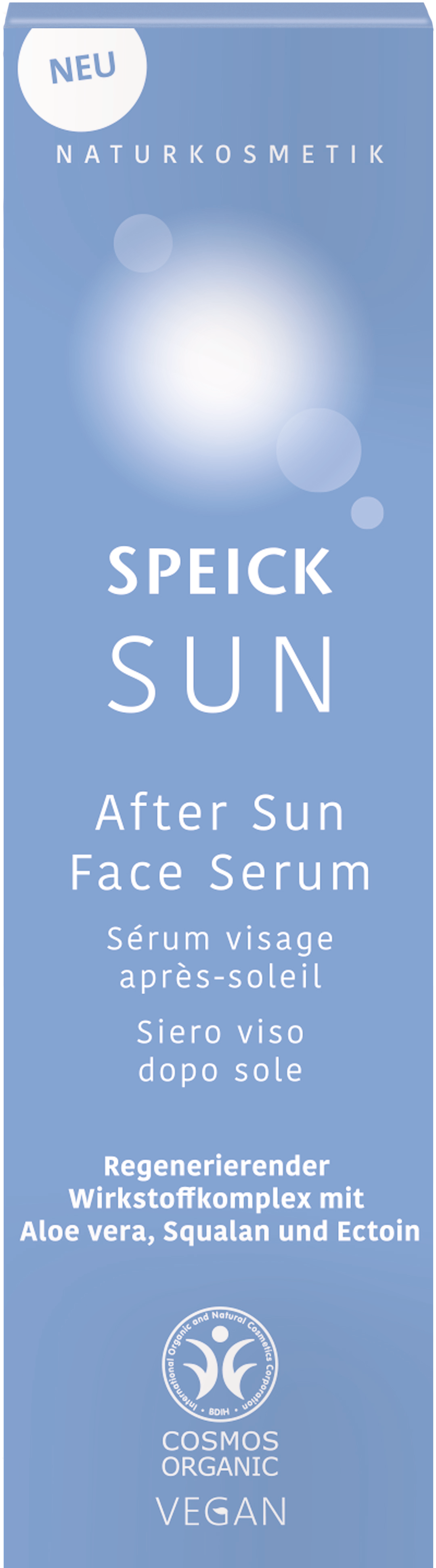 Podaruj swojej skórze intensywną pielęgnację nawilżającą po opalaniu dzięki After Sun Face Serum. Wysoce skoncentrowana formuła zapewnia intensywne nawilżenie i pielęgnuje szczególnie zmęczoną słońcem skórę. Skwalan z oliwy z oliwek zapewnia jedwabiste uczucie, zatrzymuje wilgoć i wspiera naturalną barierę ochronną skóry, a ektoina zapewnia dodatkową ochronę przed zewnętrznymi czynnikami środowiskowymi. Unikalny ekstrakt z wysokogórskiej rośliny Speick zapewnia szczególnie regenerującą pielęgnację, nawet dla wrażliwej skóry.