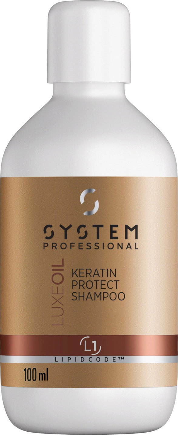 LuxeOil Keratin Protect Shampoo (L1) marki System Professional LipidCode oczyszcza i odżywia włosy luksusowymi olejkami, takimi jak olejek arganowy, olejek jojoba i olejek migdałowy.