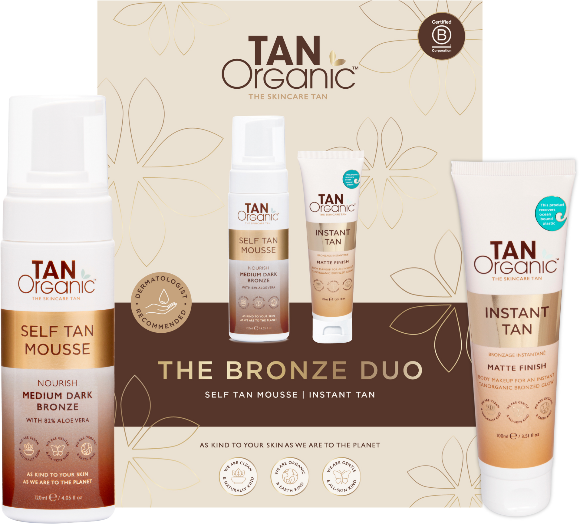 Osiągnij szybki blask i długotrwałą opaleniznę dzięki temu prostemu zestawowi do opalania. Self Tan Mousse zapewnia równomierną, pozbawioną smug opaleniznę, która rozwija się w głęboki, naturalny blask, podczas gdy Instant Tan oferuje natychmiastowy, blask, który można zmyć - dla doskonałości w podróży. Razem dają kontrolę nad kolorem - od subtelnego do muśniętego słońcem - dla pięknie opalonej skóry, dokładnie tak, jak chcesz.