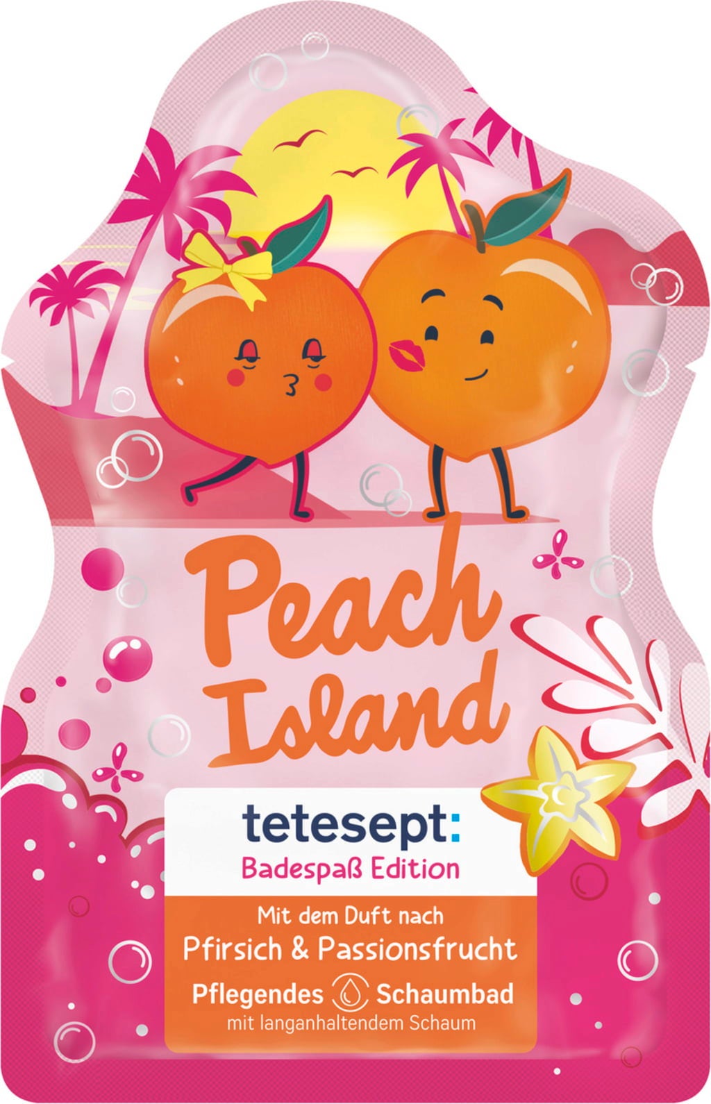 Doświadcz owocowej, świeżej kąpieli z dodatkiem do kąpieli Peach Island od tetesept. Cudowny zapach brzoskwini i marakui roznosi się po całej łazience, a długo utrzymująca się piana sprawia, że kąpiel jest idealna. Formuła nie zawiera składników pochodzenia zwierzęcego.