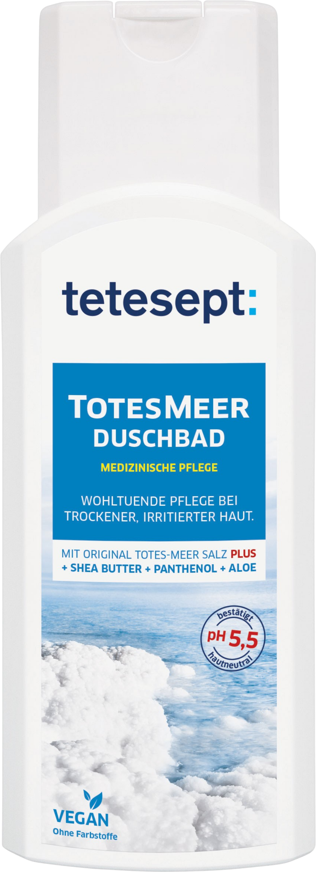 Żel pod prysznic Morze Martwe od tetesept jest idealny dla każdego, kto ma suchą lub podrażnioną skórę. Jego formuła jest nie tylko wegańska i neutralna pod względem pH, ale także nawilżająca i bogata w składniki pielęgnujące skórę, takie jak masło shea, pantenol i aloes.