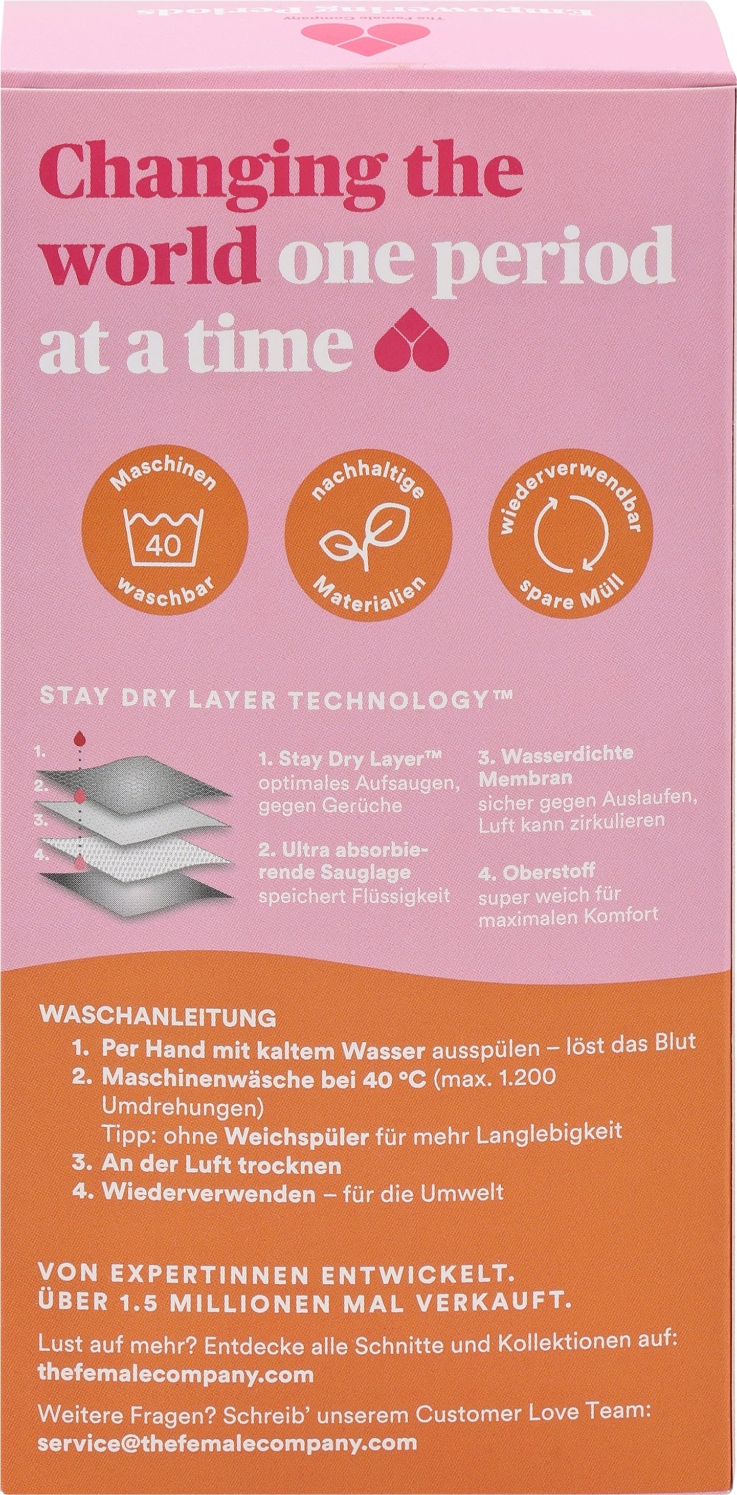 - Najlepiej używać łagodnego detergentu i unikać płynu do płukania tkanin, aby chronić włókna majtek i zachować ich maksymalną chłonność.