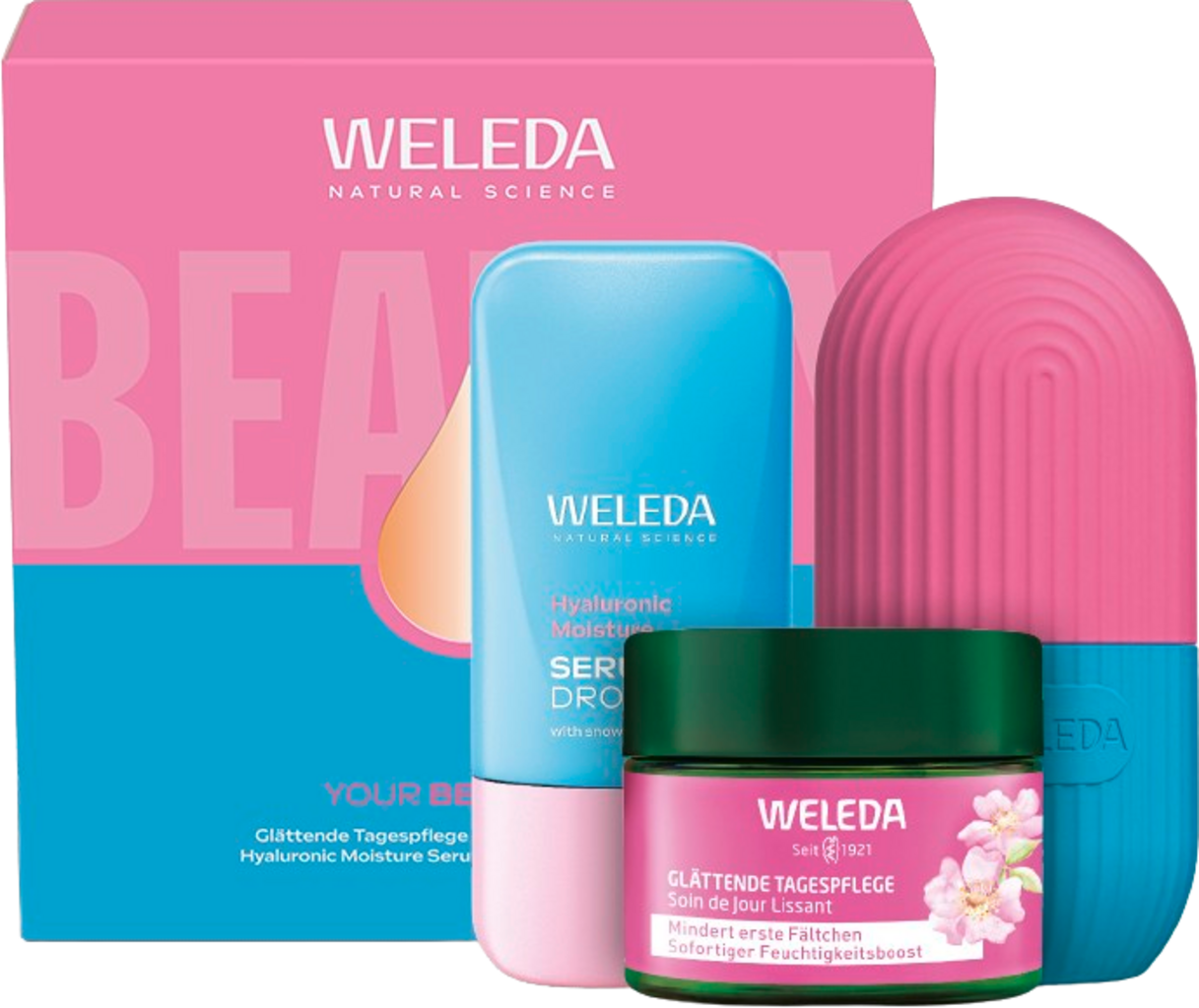 Zestaw Zestaw na prezent - YOUR BEAUTY ID zawiera dodatkową dawkę skutecznej pielęgnacji z naturalnymi składnikami. Składa się z Hyaluronic Moisture Serum Drops jako boostera nawilżenia oraz Dzika róża i biała herbata - wygładzający krem na dzień . Zestaw uzupełnia wielorazowa Facial Ice Cube.