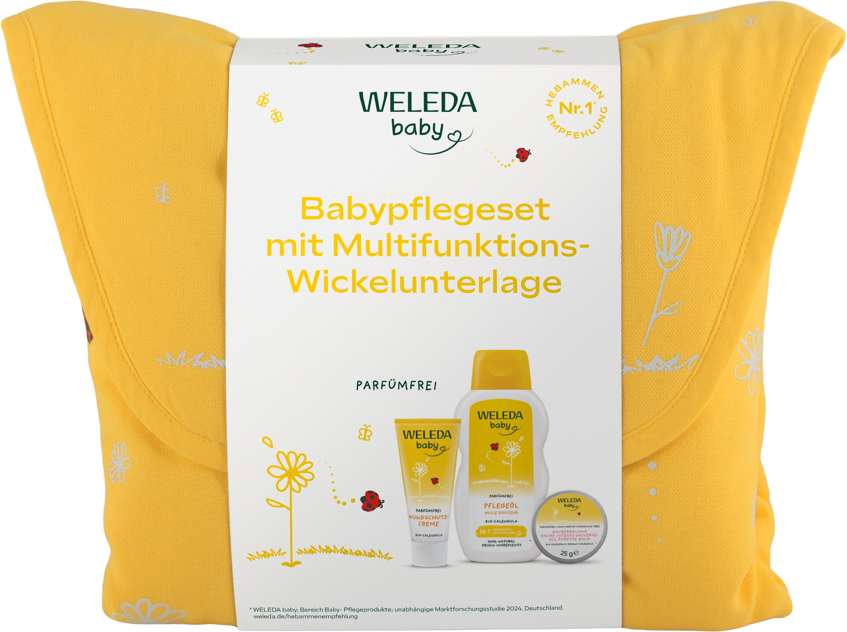 Ten zestaw upominkowy to idealne połączenie uroku i praktyczności! Zawiera bezzapachowe trio z linii Calendula do pielęgnacji i zmiany pieluszki w podróży. Wielofunkcyjny wacik, który można prać, jest jednocześnie torbą i matą do przewijania - codzienne życie z dzieckiem może być takie proste i praktyczne!