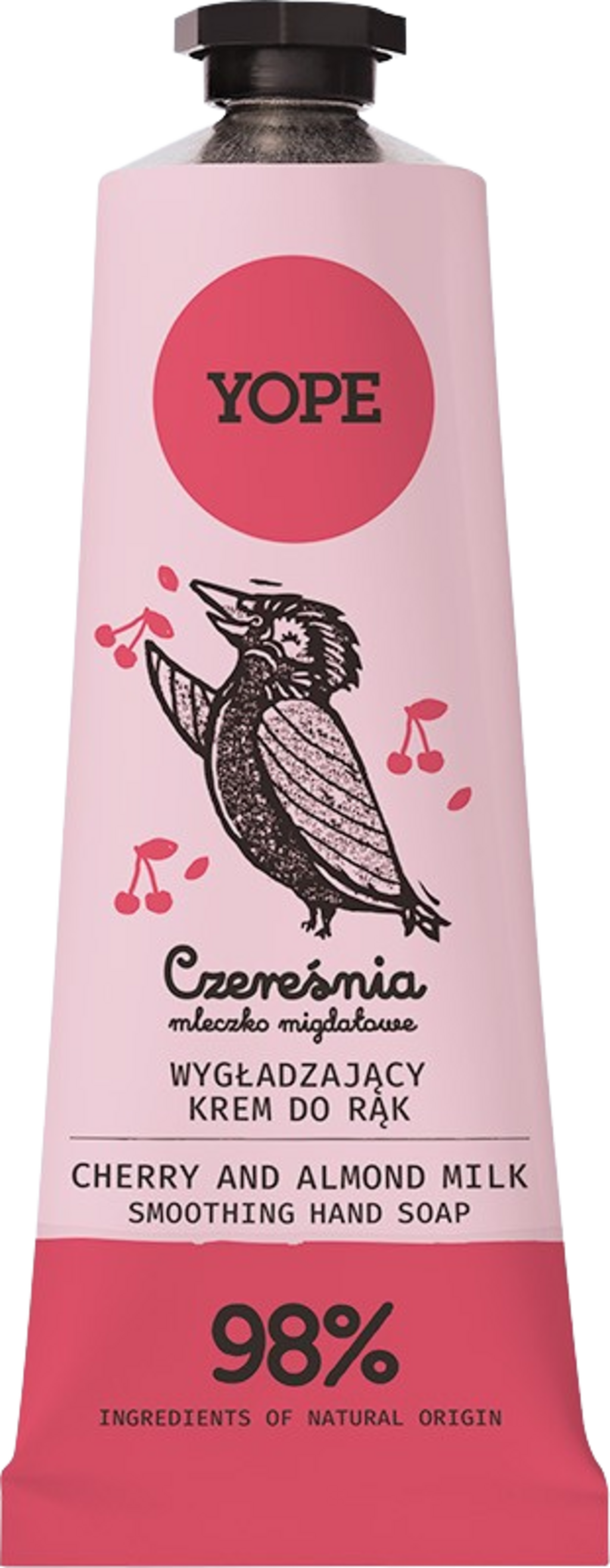YOPE Naturalny, wygładzający krem do rąk Czereśnia i mleczko migdałowe, 50 ml